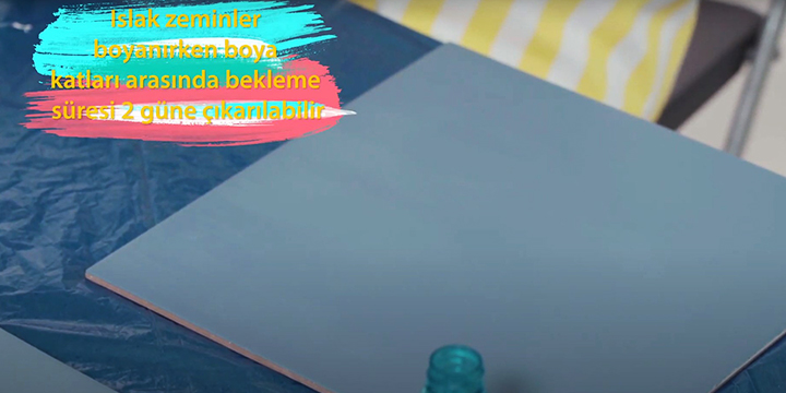 - Özellikle ıslak zeminlerde boya uygulamasından önce parlak yüzey astarı uygulamalısınız.(Islak zeminler boyanırken boya katları arasında bekleme süresi 2 güne kadar çıkabilir)